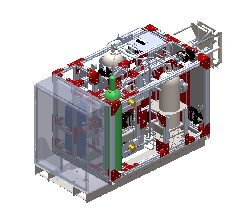 To start, I sectioned the components from the Plumbing and Instrumentation Diagram into groups that would be in close physical proximity to each other. I then created a CAD subassembly for each group of components and added the subassemblies to the main assembly I was given. I did this while keeping in mind other constraints such as component orientation (ex. venting components must face outwards, gauges must be visible, etc.) and manufacturing constraints (ex. piping must have at least a 1” straight before a flare).